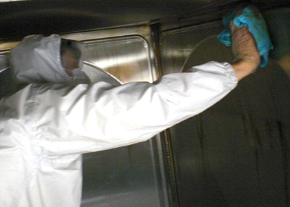 汚染物質が食品に伝染らないよう、手順に沿って衛生的に清掃しています