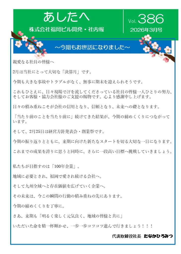 NO.272 あしたへ/vol.387(2026年4月号)/~今期も無事にスタートしました~